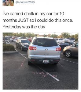 Like who would park he's a stupid guy.He drew with chalk on the road.
