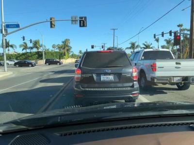 Same thing happened to me today on my way to work this morning. Kept honking at the car and I quickly glanced and saw that the driver was filming me. I couldn't tell if it was male or female because of the tinted windows and I was focusing on getting out of the way. I reported the incident with Costa Mesa Police Dept. I managed to get a picture as well.