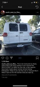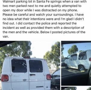 The vehicle was parked in the lot when I arrived with lights on motor running. Female with head down slumped forward with head down. Was still there after I entered and exited the building. When I started to leave she started to leave. When I drove by her, next to her she decided not to leave. Parking Lot Organized Stalker.