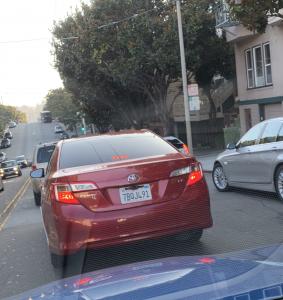 One of the worst drivers at Fullerton area. Started from left side turning lane with other car on the right, cuts across 3 lanes after the turn and cuts the other car off, twice. Stupid.