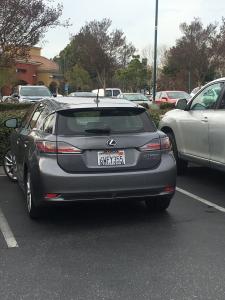 Parked illegally in handicap space, Master's Donus, Santa Maria, CA at 7:05 AM, 11/13/2015. Blocked van-accessible space (it's not even legal to park in the access aisle with a placard) and left a kid in the car.