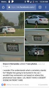 No respect. He drive up and parked on cemetery grass and tombstones just to take pics of his car.