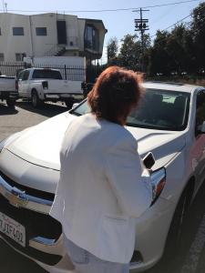 This woman road raged me today in Woodland Hills. I honked at her while she was distracted at a signal so she got behind me and chased me into a small parking lot, jumped out of her car and body-blocked me in while taking photos and videos of me, threatening to run my plates and look up where I live with my child. She had to be 70-something! The police officer I reported this too said that old people get grumpy. This was beyond grumpy. This person is dangerous and clearly has mental issues or a substance problem. Be careful out there people.