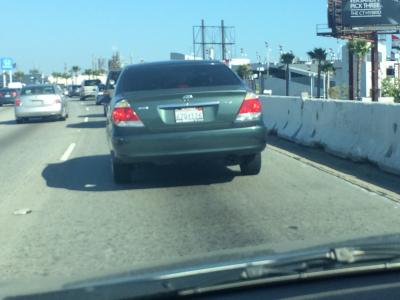 Got onto the freeway where the lane automatically merges in. This car was behind me and decides to charge into me nearly hitting me, regardless of me being ahead. Then flicks me off. Heavily illegal tinted windows on this old camry... Just saying.