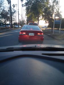 Likes to drive in the car pool lane and Salk on his breaks. Complete prick and threatened to throw a bottle of water at me when confronted. Looks like he was drunk while driving