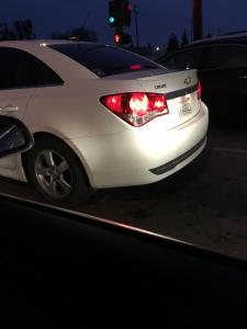 This jerk in a white Chevy Cruse rode my bumper all because he had to make the light. I break checked him and he got along side of me and flipped me off. When the light turned green again we both made the turn. Her then abruptly pulled to the side of the expressway as if I was supposed to stop and fight with him. I kept driving as he followed me the entire time. Finally I started going around the block and he drove away. What an a-hole!