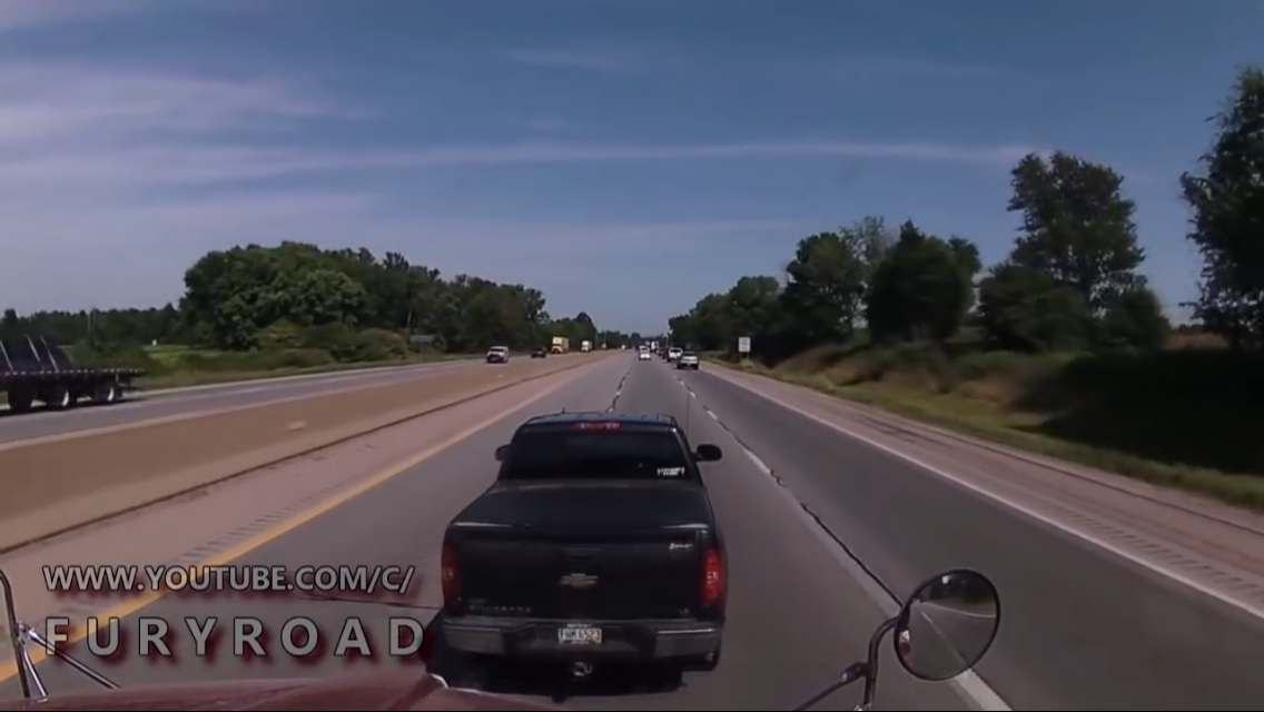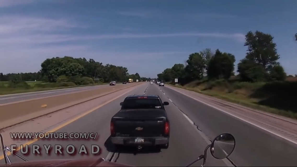 Female with a small dog on her lap almost side swipe me on the Grand Central going west. I had to swerve into another lane, lucky no car was in that lane.