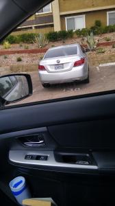 The lady that drives this car swerves in her lane. saw her texting on her phone. She ran a red light. I hope she thinks about her kid in the backseat. It's disgusting behavior.